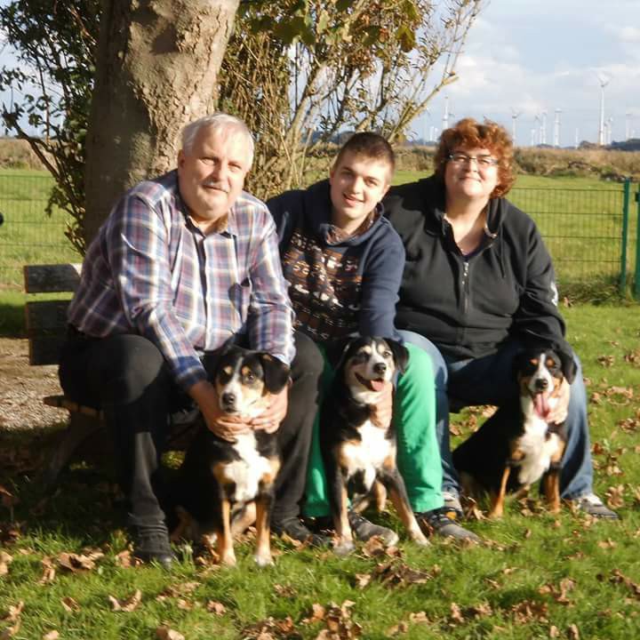 Wir wohnen seit 2021 im schönen Niederlangen im Emsland. Das liegt zwischen Meppen und Papenburg. Ursprünglich kommen wir aus dem Ruhrgebiet. Ich bin als Kind mit Hunden aufgewachsen. Meine Eltern hatten immer Hunde. Als unser Sohn in ein Alter kam, dass wir mit gutem Gewissen einem Hund zumuten konnten, hielt ich es ohne nicht mehr aus. Es sollte zuerst ein Golden Retriever werden, davon bin ich dann aber schnell wieder abgekommen. Dann dachten wir ein Beagel wäre doch ein toller Familienhund. Eine Freundin riet mir von einem Beagel ab. Sie meinte von 10 Leuten die im Wald ihren Hund suchen hätten 7 einen Beagel. Sie erzählte mir von einem Entlebucher Sennenhund in ihrer Siedlung, den sie toll finden würde, der wäre immer freundlich und aufmerksam. Einen was .... fragte ich. Als ich Entlebucher dann fehlerfrei schreiben konnte gab ich das Wort bei Google ein und musste bald feststellen, dass es diese Rasse sein sollte oder keine. Nach längerer Wartezeit zog dann 2005 Österwinters Farm Amy bei uns ein. Da man auf einem Bein nicht stehen kann zog dann 2007 Beria von der Schlossbergwiese ein. Bekanntlich sind alle guten Dinge drei und es kam dann 2014 auch noch Nele (Grete) aus Lummerland mit dazu. Wir sind von dieser tollen Rasse so überzeugt, dass wir beschlossen haben als Mitglied im SSV/VDH selber Welpen aufzuziehen um so einen Beitrag zur Entwicklung und zum Erhalt der Rasse zu leisten. Damit unsere Zucht weitergehen kann lebt seit September 2021 Ebby vom Salzunger Schlößchen bei uns.